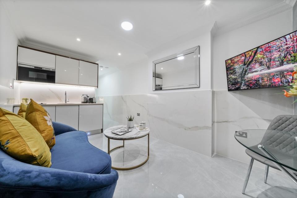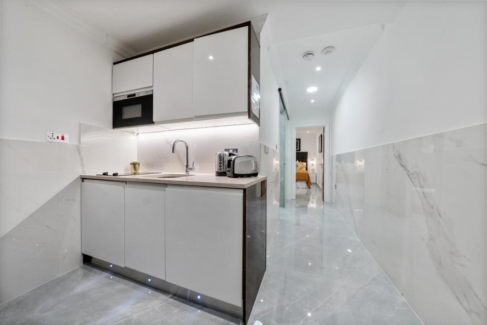 A stylish, newly renovated fully furnished 1 bed apartment situated on the lower-ground floor of this superbly maintained residential apartment building located just a short distance from Baker Street Tube Station and the attractions of Oxford Street & Hyde Park. The apartment offers a good size open plan living area with porcelain tiled floors, modern fitted kitchen area with integrated appliances & composite worktops, LCD TV with satellite feed and a fully tiled shower room with WC. The apartment has gas central heating and the building is equipped with CCTV for added security and ultra-fast Wi-Fi is available on request.